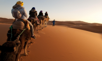 Camel ride at sunrise in the highest dunes of Merzouga and departure to Zagora via the fortified desert town of Rissani. Stroll through its souks and outside visit of Moulay Ali Cherif Mausoleum. You will continue your route to Zagora and stop at Alnif for the lunch at Imdoukal Kasbah and visit a local school. Arrival at Zagora and discovery of the old irrigation system in Zagora and the palm grove.